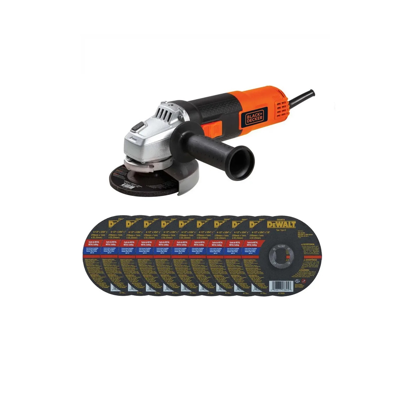 Black&Decker Esmeril 4-1/2" 820W G720 +10 disc.cte.