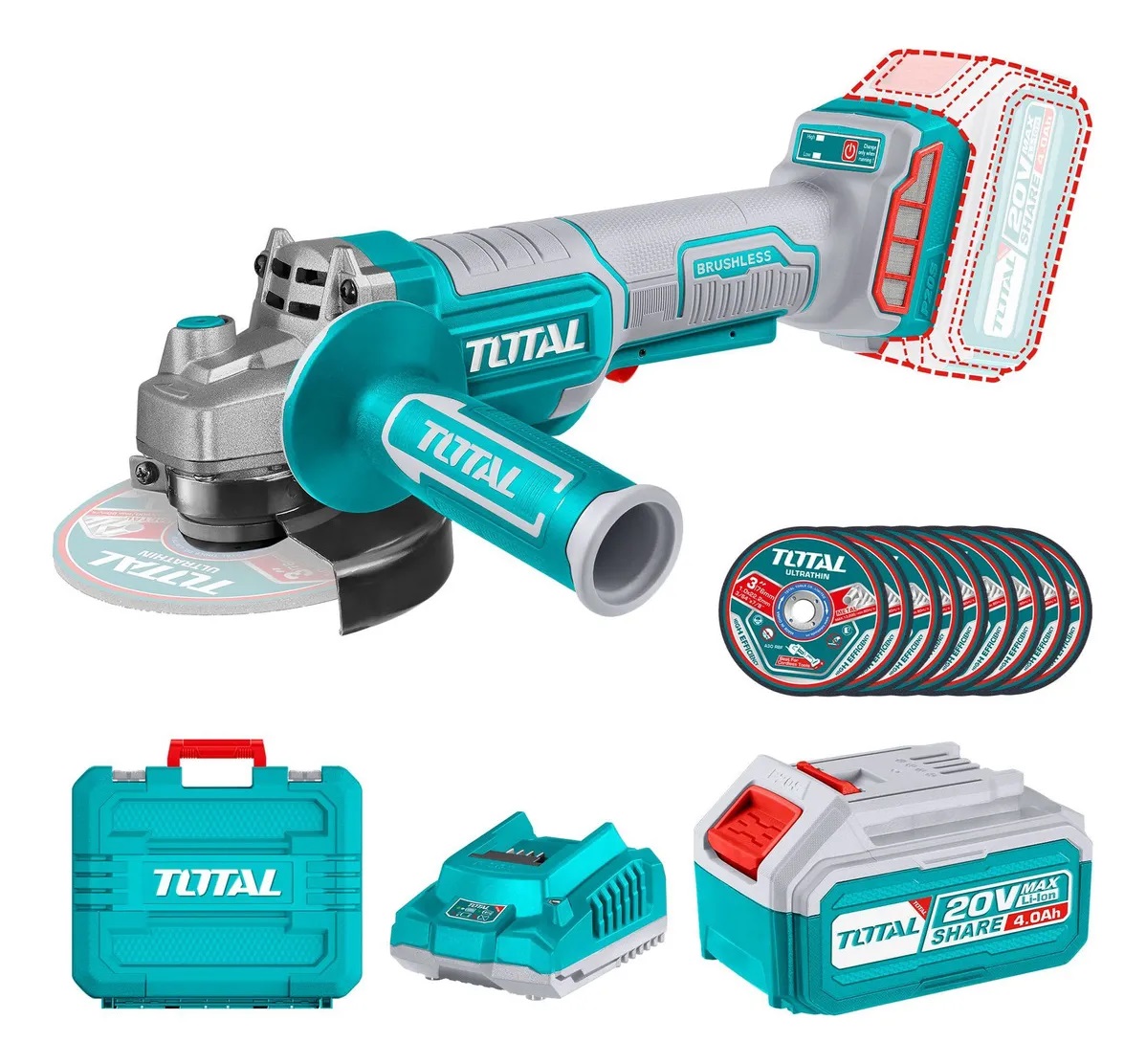 Esmeril 20V 4-1/2" 1000W s/carb + 1 bat. 4A TAGLI21115