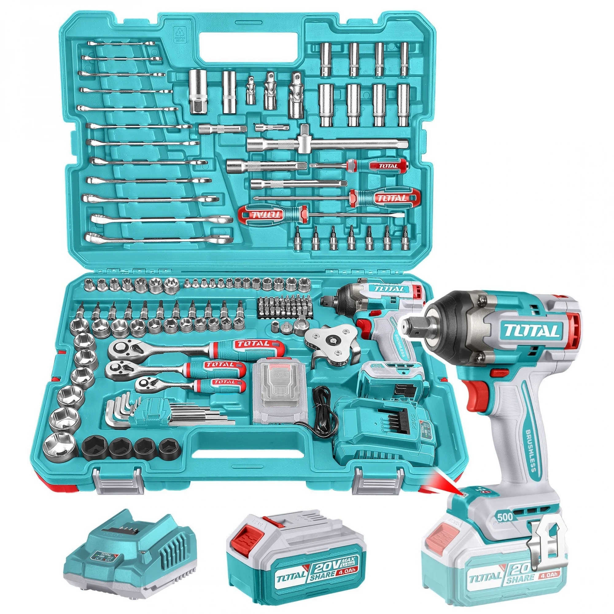 Pistola d/impacto 20V 500Nm +152 piezas THKTHP31522