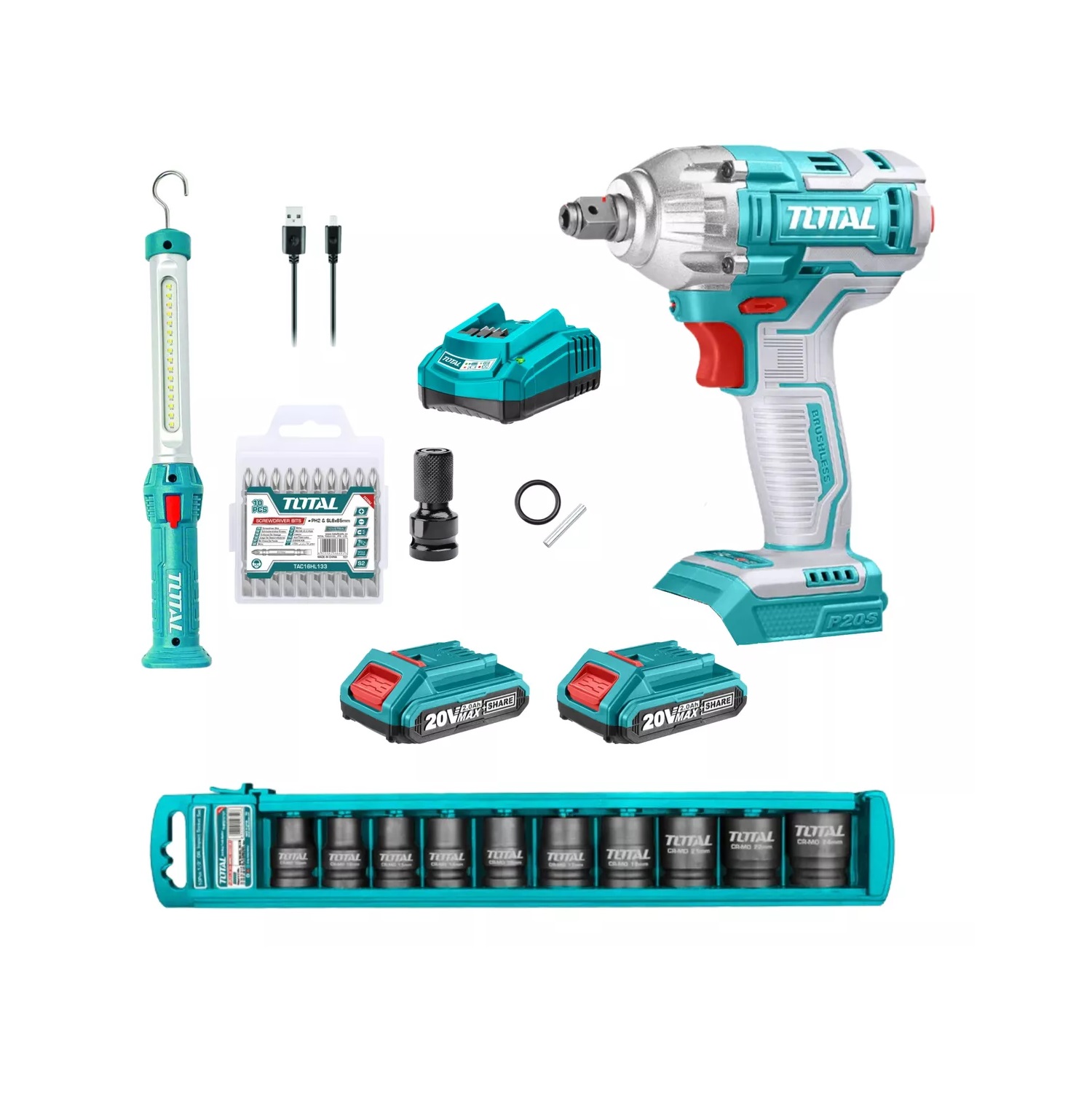 Pistola d/impacto 20V + Lampara de trabajo 300lum. TOS