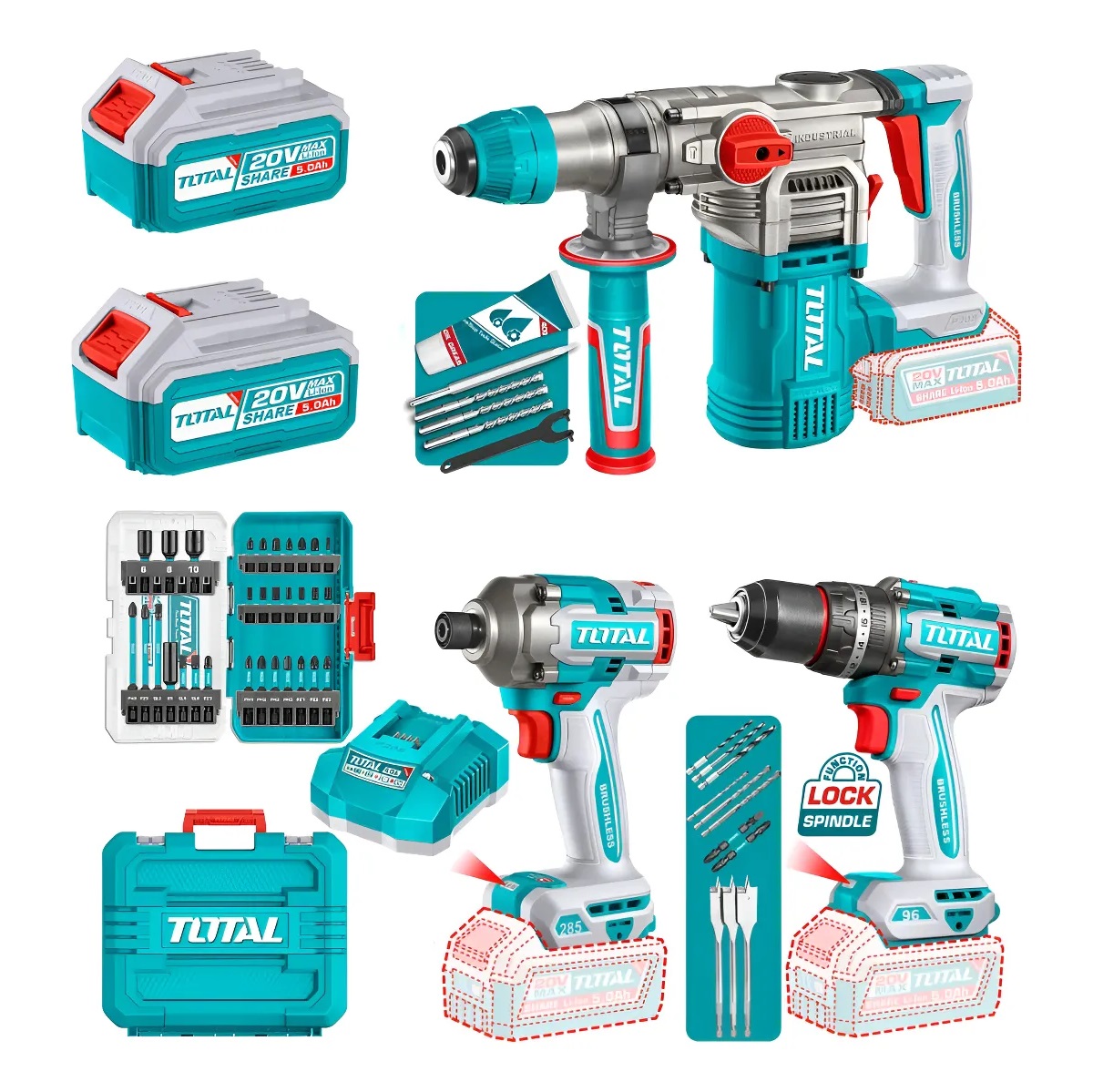 Tal.Perc.20V 1/2" 96Nm+Ator.impac.285Nm+Rotomartillo 1-